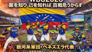WBC 2026準々決勝、侍ジャパンの相手は最強軍団ベネズエラ!アクーニャJr.やアラエスなどメジャー級の脅威を徹底分析。そんな強敵を打ち破るのは佐藤輝明(サトテル)の一発や!筆者の独自の視点と応援スタイル、注目選手ガイドも紹介。