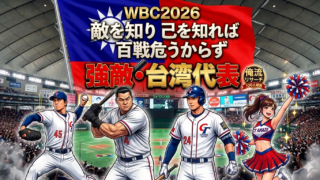 WBC2026初戦!侍ジャパンの強敵・台湾代表を徹底リサーチ。プレミア12覇者の実力や、エース林昱珉、主砲ギリュギリュ・クンクアンら要注意選手、さらに熱狂的な台湾チアまで「俺流」に解説します。これさえ読めば今夜の試合が100倍面白くなること間違いなし!